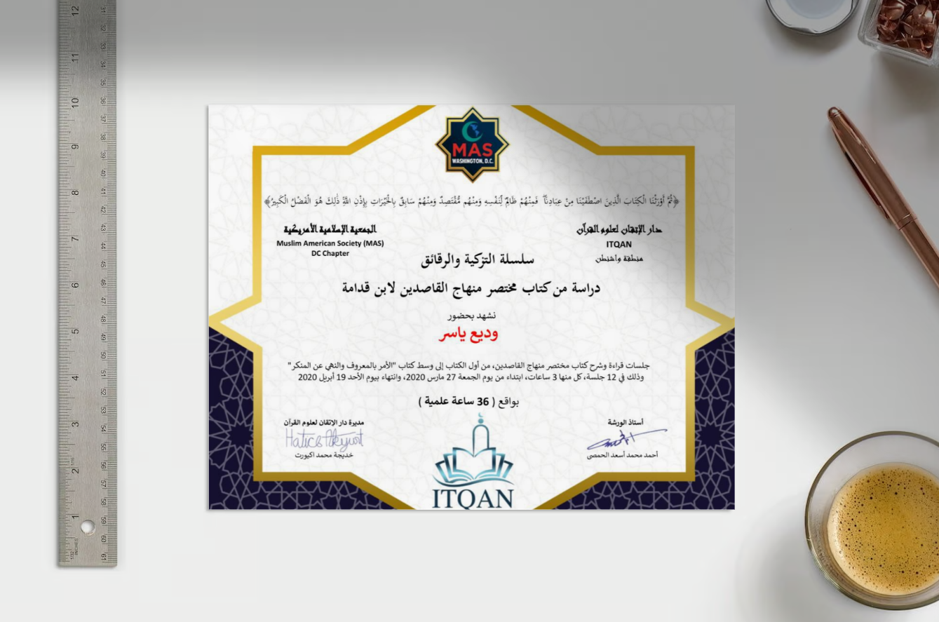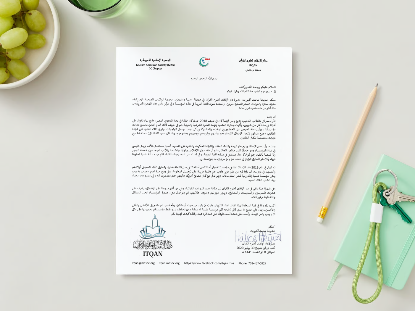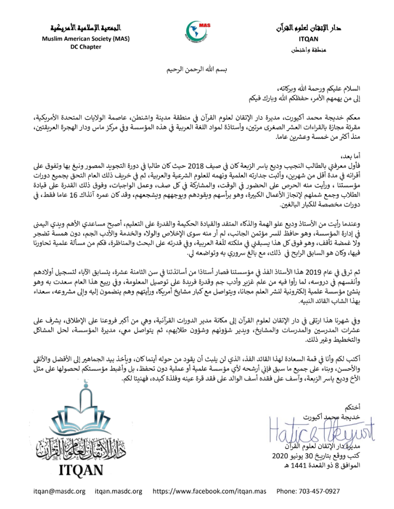 - Institute: Muslim American Society (MAS) DC Chapter ITQAN Center of Excellence in Quran Sciences Washington DC Region